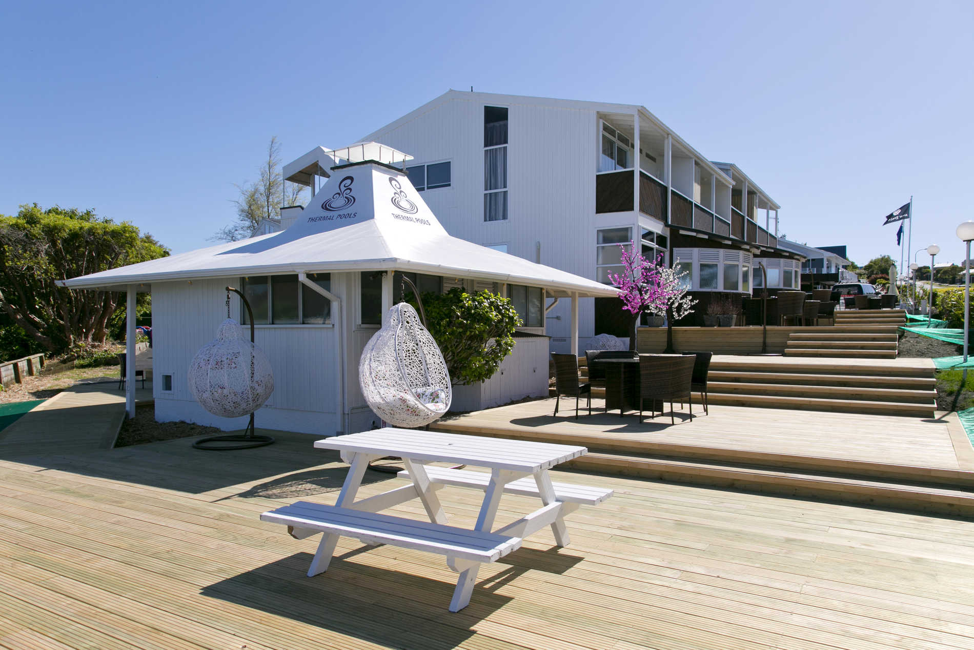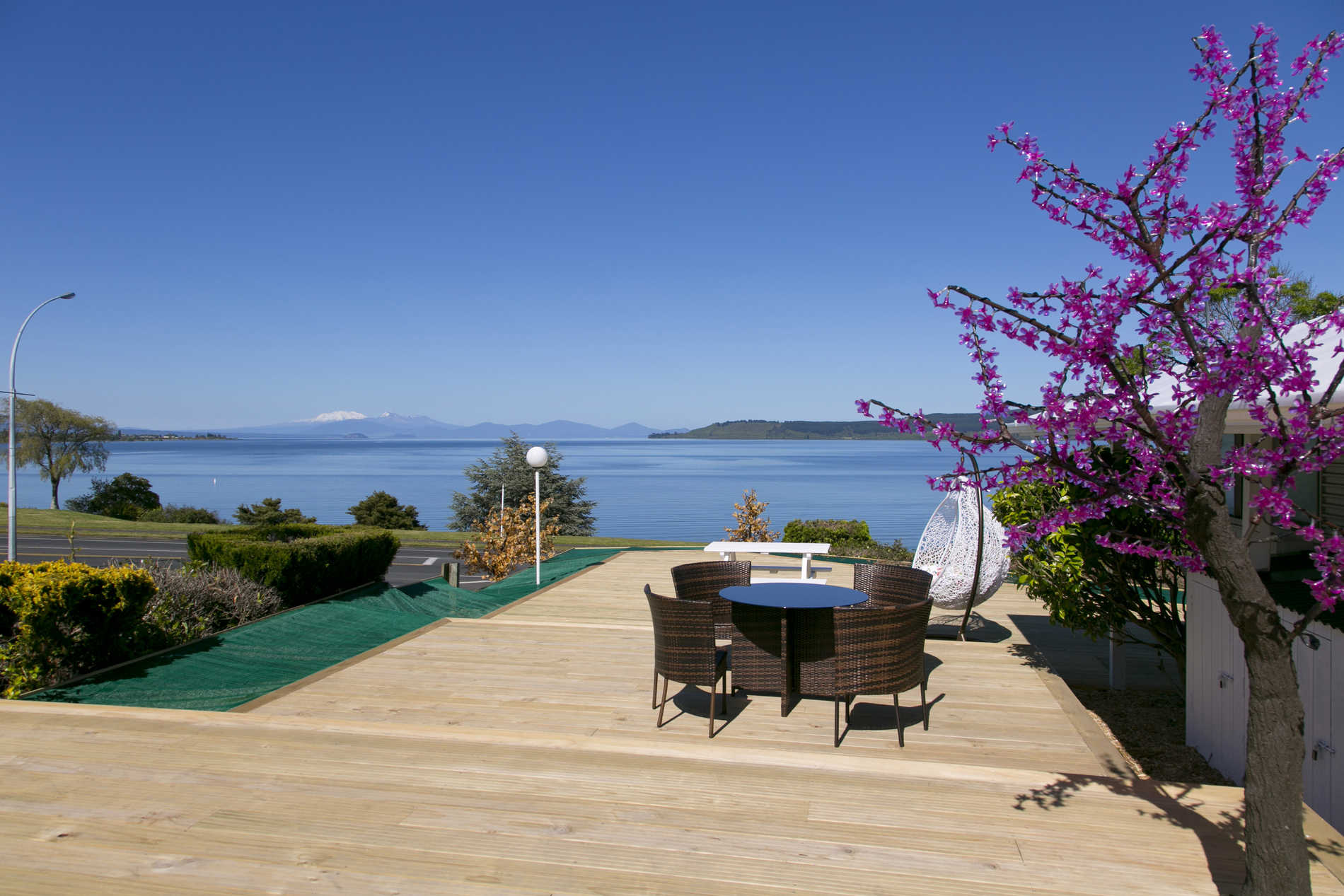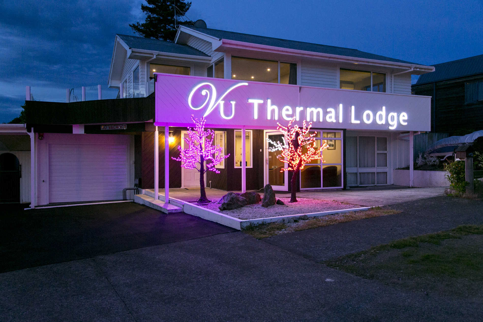 We are called 'VU' as it stands for the amazing 'views' you see at our motel. Fully refurbished in November 2016. Proudly located by the lakefront -- one of the best spots in Taupo Staying in VU Thermal Lodge, there are two things you would not forget: 1. The view of the lake and mountains Walking on our massive terraced deck, you will discover that this is a perfect perspective of the lake; sitting down and enjoying the breathtaking sight upon your eyes: the changing colors of the great lake, magnificent snowy mountains, drifting long clouds and unique sunsets created by our beautiful mother nature... your experience would be unforgettable. 2. Natural mineral baths We have a natural thermal bore beneath the property 25 meters down, its average temperature is 65-82 degrees. Total 10 ground floored one bedroom suites and studios are our guests' pick all year round, in -room private thermal pools , unique deco and light effct creats a harmony and relaxing atmosphere, so rejuvenated after all. A communal bath house contains two big pools welcomes all guests free of charge! Great saving on entry fees in thermal facilities elsewhere. Thermal water operates twice a day, 7.30am -- 9.30am and 4.00pm -- 11.00pm. *The temperatures of the pools are 37-39°C and 40-42°C Don't forget to bring two things with you before you come for your stay: A camera and swimming gear. An outdoor pool with fresh water is heated Geo-thermally and regularly serviced by pool specialists, it's around 25 degrees, which is nice and warm in all seasons (during mineral water hours, the swimming pool would be ideally warmer). Having a nice dip in the pool after after a long drive or hiking is definitely relaxing and enjoyable. Recent changes made to our facility are made to enhance the comfort in our service, which includes: Electronic code locks that secure the safety of the rooms and save the risks of losing keys Flat screen TVs, 55 inch of high quality channels *We don't provide SKY channels. ** Children Policy: Minimum age is 7 years old (some units are adult only) Air-conditioners installed in all rooms (hot and cold) Super King sized beds with latex toppings in all bigger rooms Soft close toilets in all rooms Shower rails in all bathrooms LED lighting in all rooms LED outdoor lighting Order & Delivery a bouquet of flowers to your room is available on request Customized LED signage can be arranged on your request, sending a love message or celebrating a special day will be a highlight during your stay Total Rooms: 17 (10 suites or studio unit have in room private mineral pools; 5 upper floored suites have own blacony with Lake view and mountain view) Are you ready to take your pleasurable vacation to the next level?
